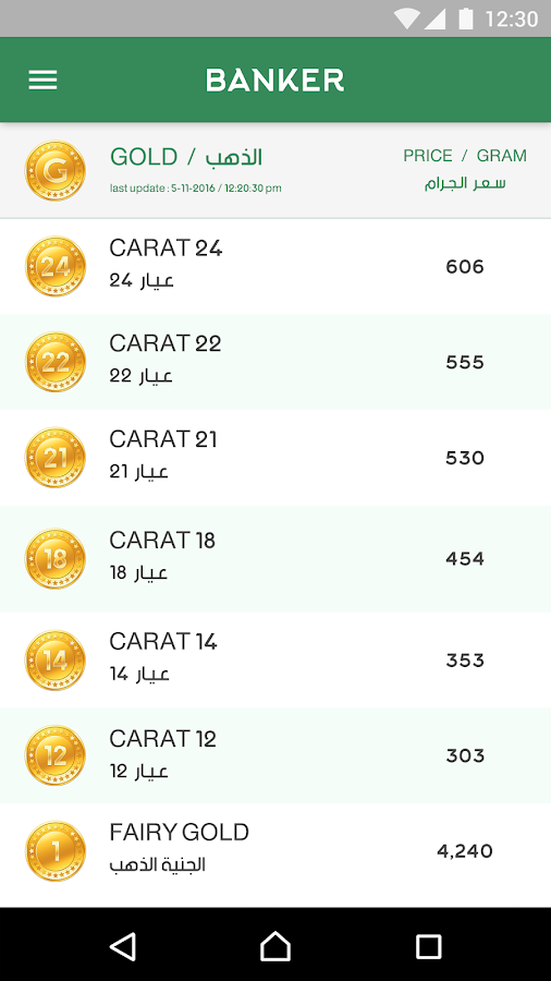 - سوف تجد في الجزء العلوي من الشاشة أخر تاريخ تحديث للبيانات.